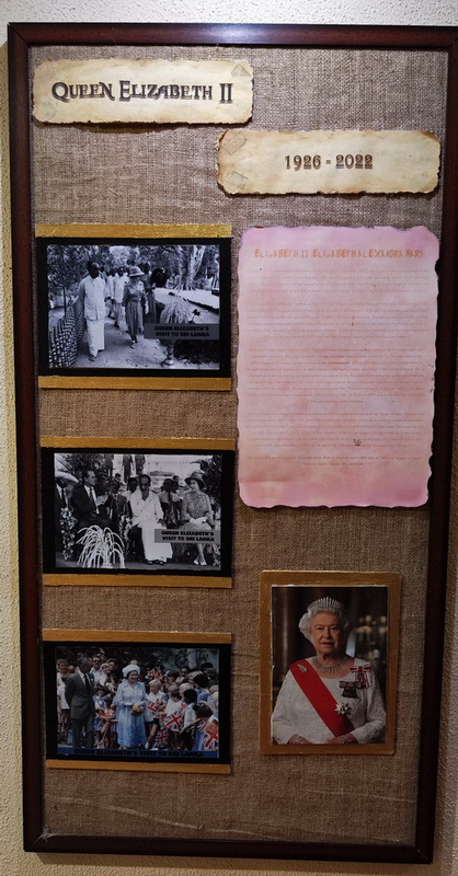Кто еще? В коридоре отеля видим стенд, посвящённый визиту королевы Елизаветы II в Шри-Ланку. Фото, документы, парадный портрет. Но фактчекинг утверждает, что именно в этом отеле королева не останавливалась.