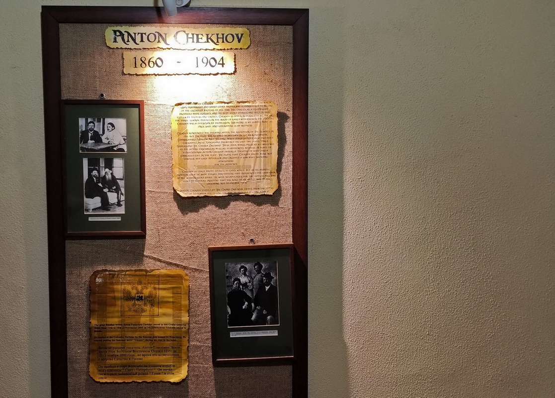Пару слов о гостях и причем тут Чехов. Да, Антон Павлович действительно останавливался в этом отеле. Буквально пару ночей, на своем пути из Сахалина в Петербург в 1890-м году пароход Доброфлота останавливался здесь на бункеровку и пополнение припасов.